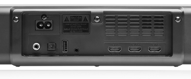 - 2.1 channel soundbar with a built-in subwoofer