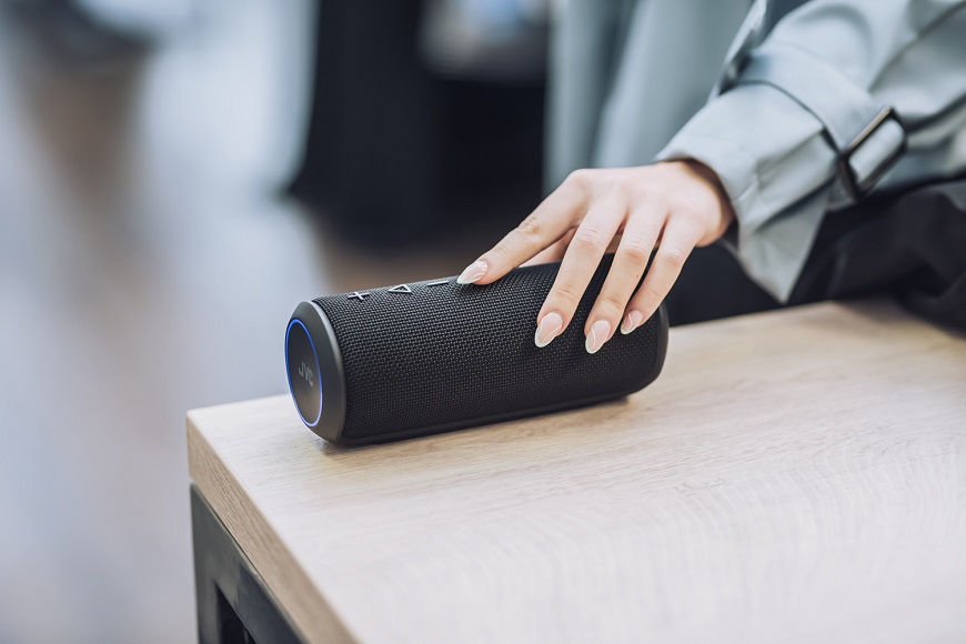 Thanks to IPX6 splashing water resistance, JVC XS-E322B wireless speaker may be used without any problem in your bathroom, near swimming pool or in the rain.