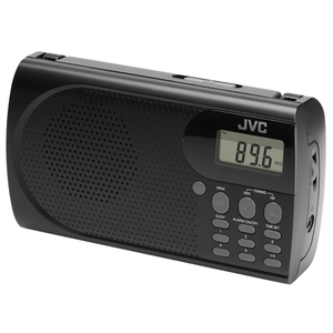 Radio, analog FM/AM tuner, headphone jack, AC or battery powered, black