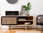 This is how to characterise the elegant tabletop player JVC RD-E761 allowing several ways to listen to your favourite music or spoken word. The appliance is made of wood combined with black accessories. It excellently fits into any indoor premises.